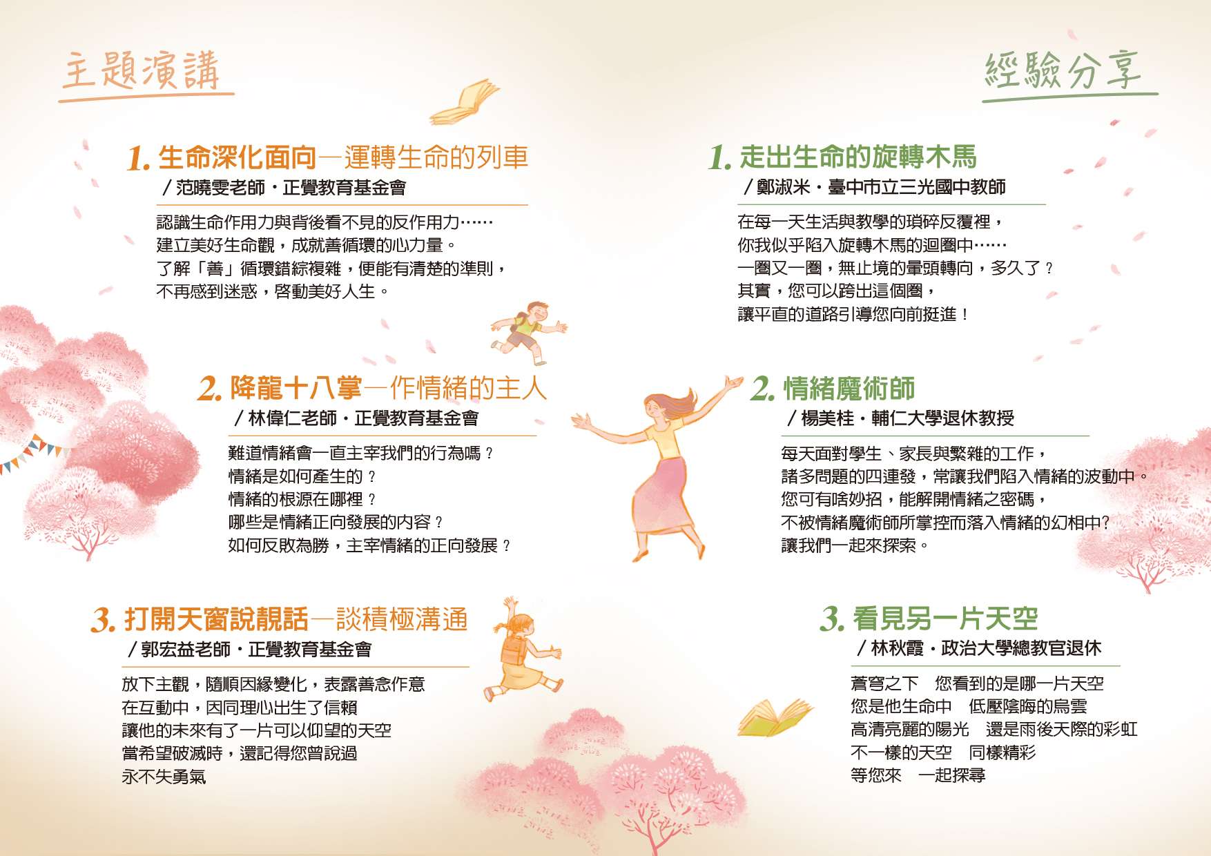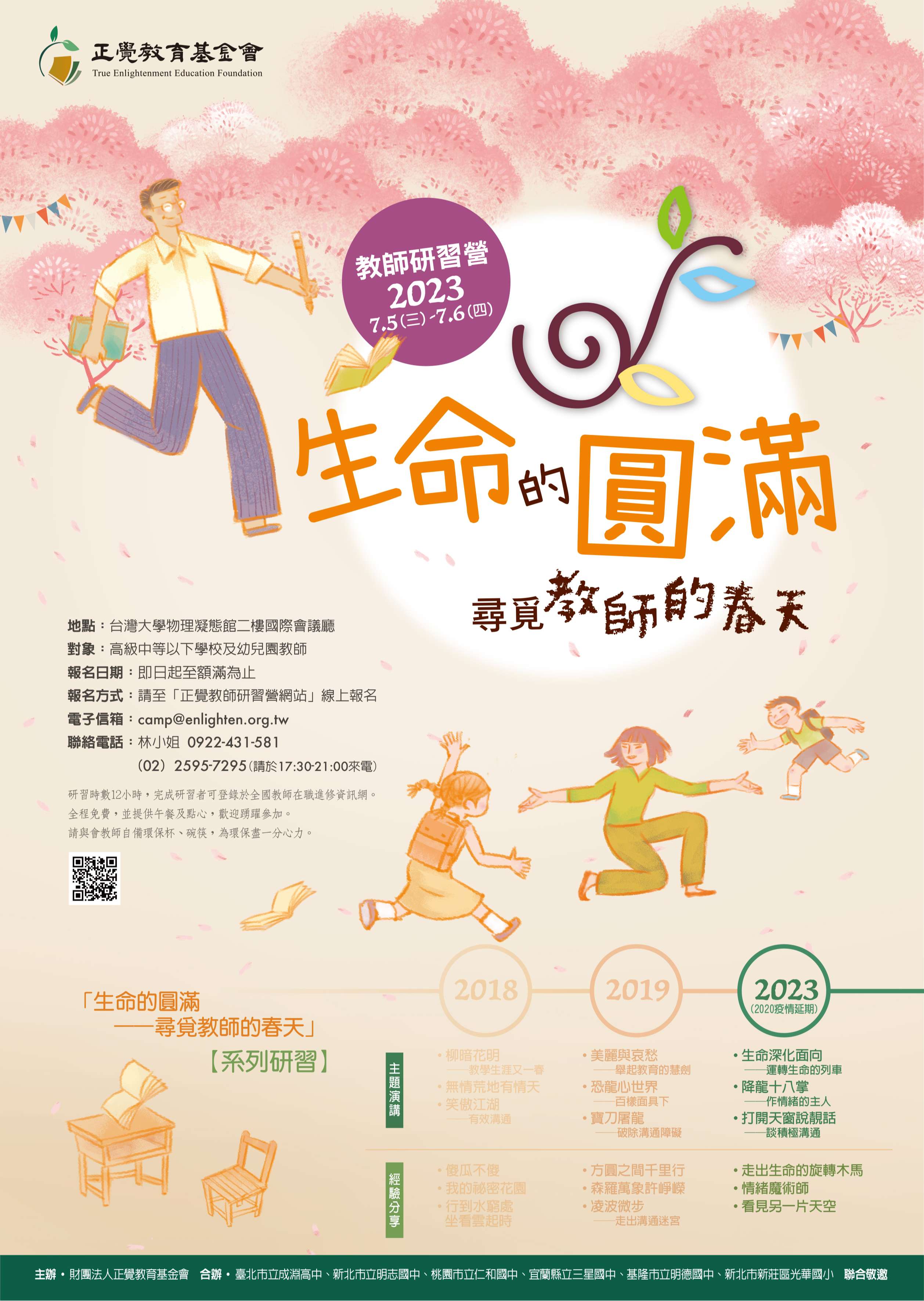 三、本校與財團法人正覺教育基金會合辦2023年生命教育「生 命的圓滿——尋覓教師的春天」教師研習活動,規劃如 下: