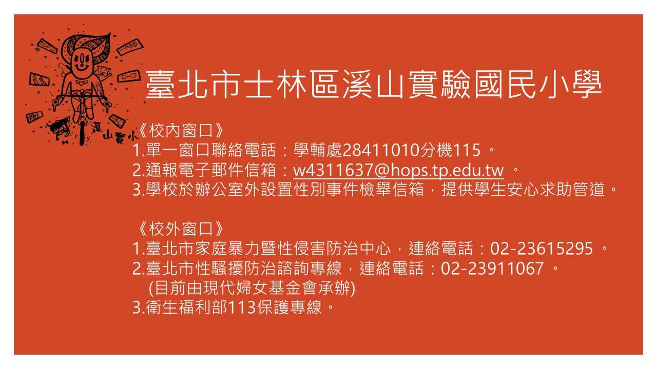 2.臺北市性騷擾防治諮詢專線,連絡電話:02-23911067。