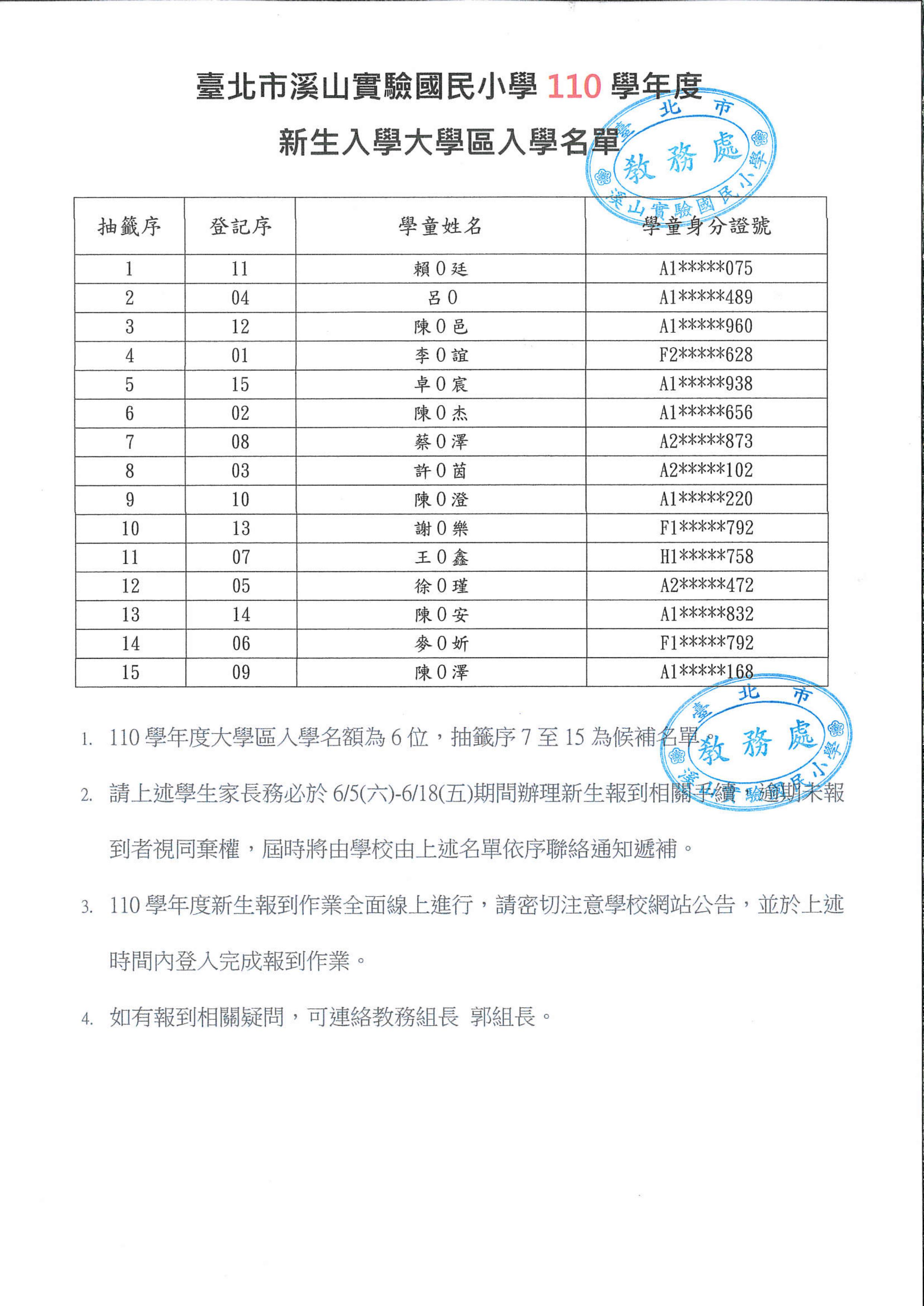 110學年度新生入學大學區入學登記抽籤結果:https://youtu.be/97aFmfhoJKM