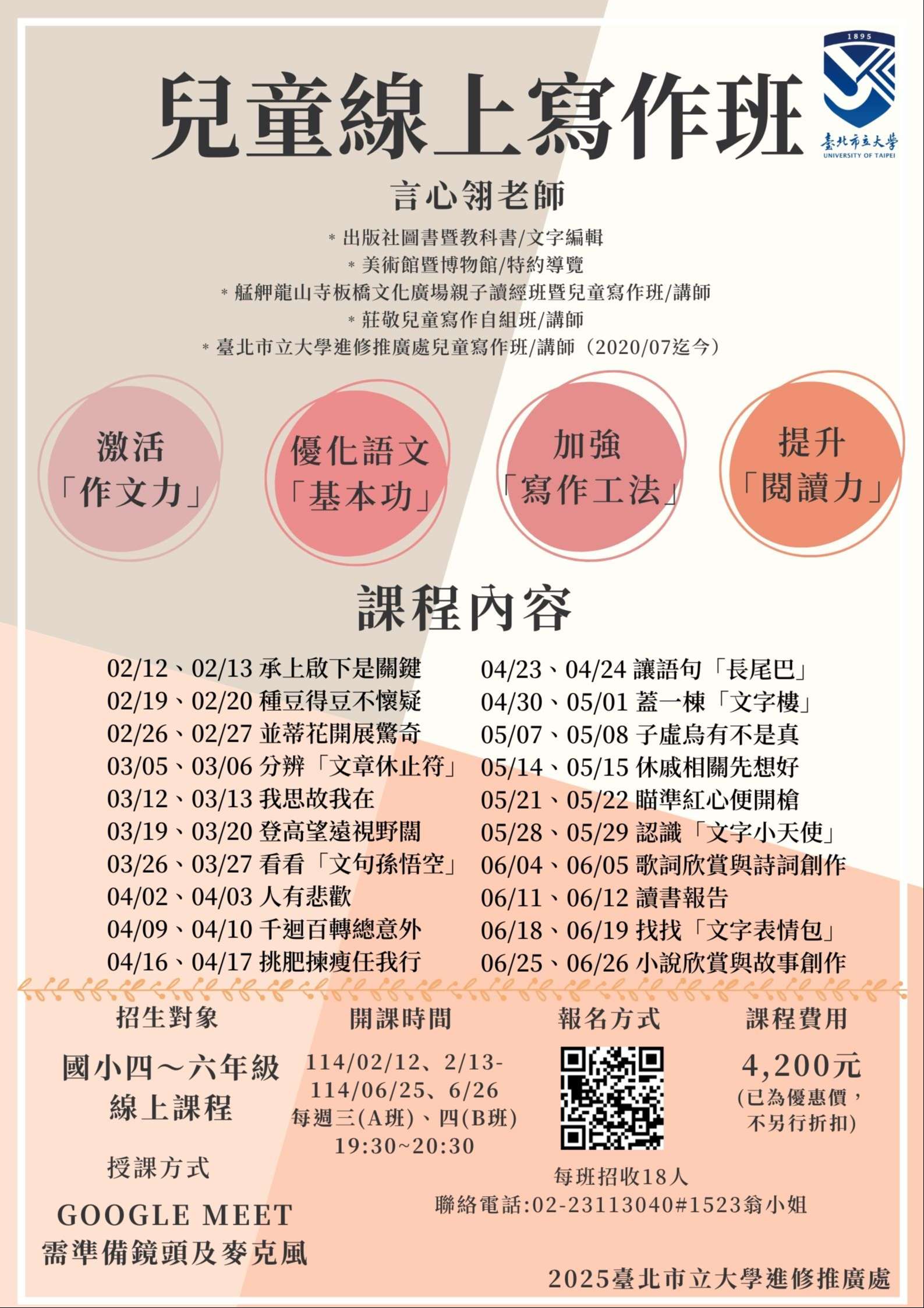 六、檢附課程招生海報1份,如有課程相關疑問,請逕洽本案承