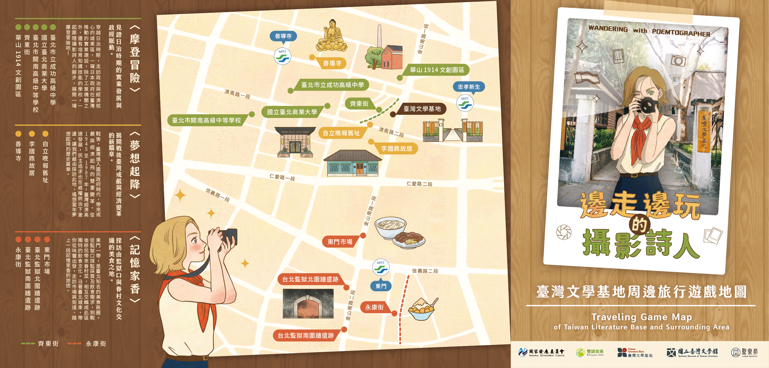 二、預約參加英語導覽者,可獲贈「臺灣文學基地雙語實境遊戲包」。遊戲包內含解謎遊戲手冊,旨在引導使用者探索城東地區文化資產,並透過雙語內容融合英語與華語學習元素。