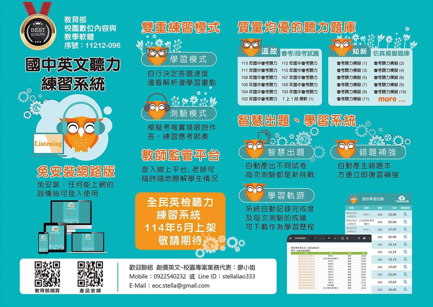 四、如需安排產品說明,敬請聯繫本案聯絡人:廖小姐。手機0922540232;Line ID: stellaliao333; email: eoc.stella@gmail.com。