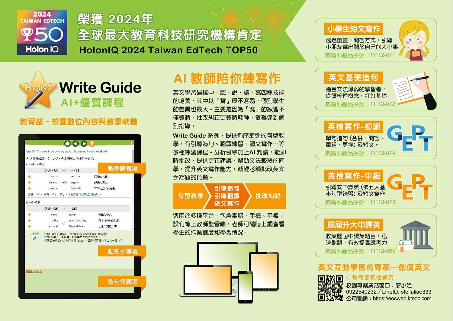 一、本公司長期專注開發學習軟體,2024年榮獲雙料教育科技大獎肯定: