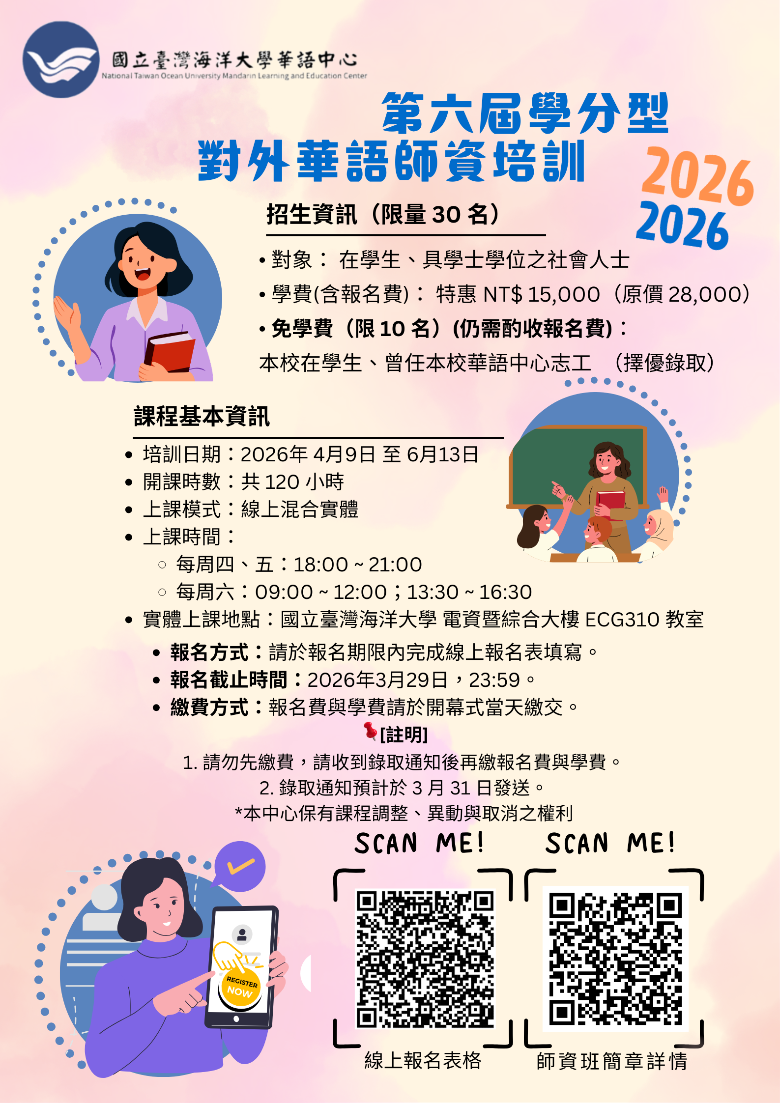 (四)報名對象: 在學生(大學含以上)及具學士學位且對華語教學有興趣之社會人士 。